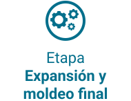 En esta etapa las perlas pre-expandidas y estabilizadas se transportan a moldes o bloques, para lo que se utiliza una máquina llamada moldeadora o bloquera, donde nuevamente se les incorpora vapor de agua, con la finalidad de que las perlas se unen entre sí formando una pieza de medidas definidas por la máquina utilizada. Los bloques obtenidos en un proceso de corte, se transforman en planchas dimensionadas o productos moldeados para ser comercializados.